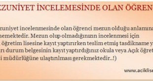 Sınav sonuçların açıklanmasıyla aşağıdaki soru öğrenciler tarafından sıkça gündeme getirilmektedir. Peki öğrenci sayfanızda karşınıza çıkan aşağıdaki yazı ne anlama gelmektedir. (Mezuniyet incelenmesinde olan öğrenci mezun olduğu anlamına gelmemektedir. Mezun olup olmadığınızın incelenmesi için Açık öğretim lisesine kayıt yaptırırken teslim etmiş tasdikname yada başarı durum belgesinin kayıt yaptırdığınız okula veya Açık öğretim lisesi müdürlüğüne ulaştırılması gerekmektedir..!) Bu sorunun özetle yanıtı nedir? Mezuniyet …